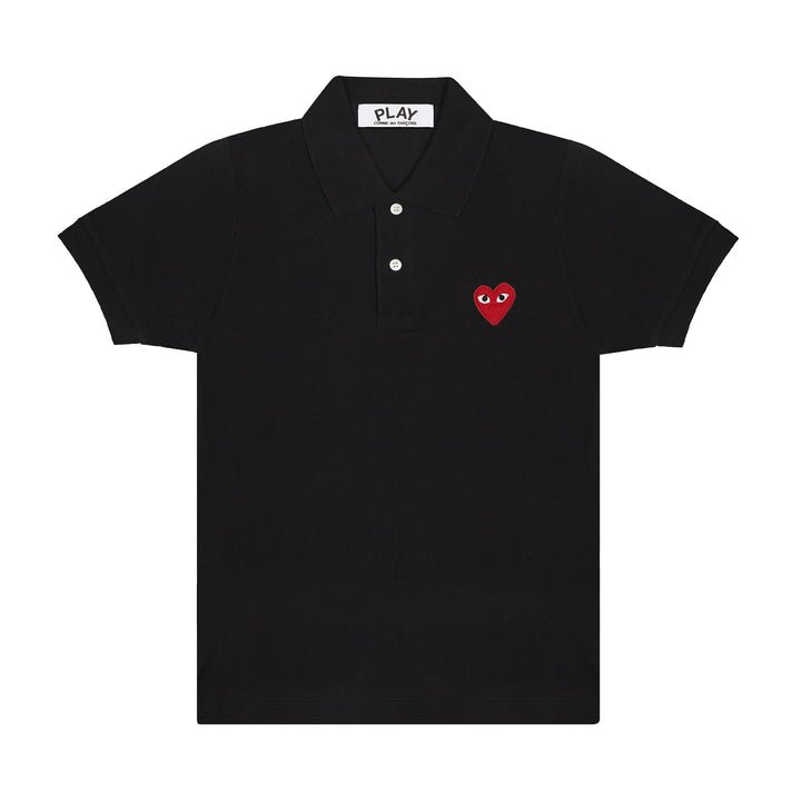 Le polo noir PLAY avec emblème rouge incarne le style distinctif et intemporel de Comme des Garçons Play. Confectionné en coton de qualité supérieure, il offre un confort exceptionnel et une durabilité remarquable. Le célèbre cœur rouge brodé sur la poitrine ajoute une note audacieuse et reconnaissable entre toutes. Ce polo polyvalent se marie facilement avec tous les styles – du look urbain décontracté aux tenues plus habillées.